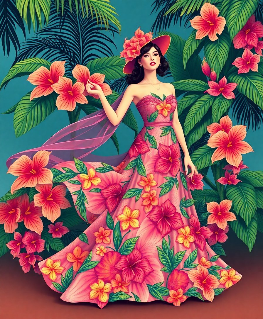 Transform your space with this captivating Sweeping Vintage Tropical Gown Paint By Numbers masterpiece. This elegant design showcases the timeless allure of vintage fashion against lush tropical backdrops. Create your own stunning artwork while experiencing the therapeutic joy of painting.