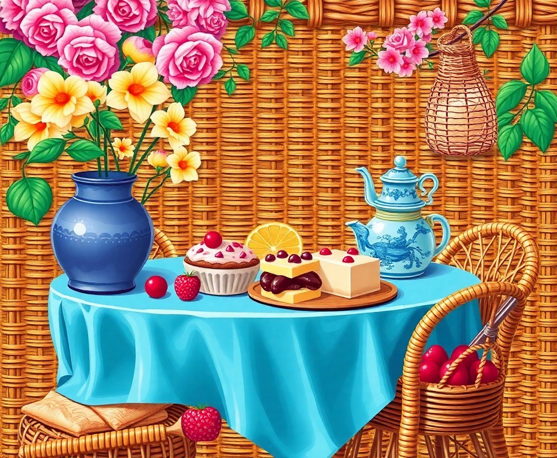 Transform your creative space with this charming Sweets In Woven Rattan Paint By Numbers kit. This delightful design captures the warmth of vintage confectionery treats nestled in a beautifully woven basket. The golden sunlight illuminates every caramel and sweet detail, creating a nostalgic masterpiece perfect for any cozy indoor setting.