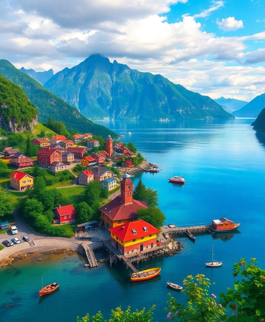 Whether displayed in your living room or gifted to someone special, this tropical fjord artwork becomes a conversation starter. The unique combination of exotic elements and mountain landscapes creates visual interest that captivates viewers.
