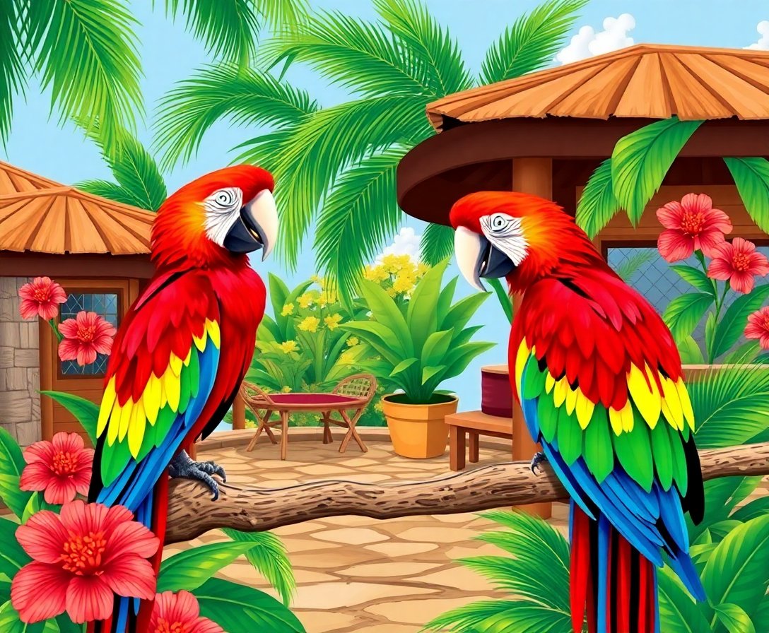 Experience tropical paradise through this stunning Teakwood Cabana Scarlet Macaw Paint By Numbers kit. This vibrant design captures a magnificent scarlet macaw perched against warm teakwood, bringing island serenity directly to your home. Transform blank canvas into a masterpiece that radiates tropical warmth and exotic beauty.