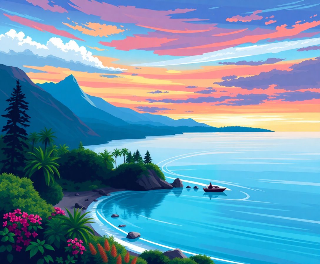 Transform your creative space with this stunning Teal Alpine Tropical Horizon Paint By Numbers masterpiece. Moreover, this unique design blends serene alpine landscapes with vibrant tropical elements. Additionally, the mesmerizing teal hues create a captivating horizon that brings tranquility to any room.