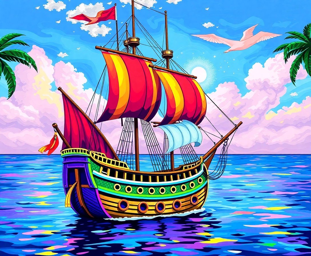 Embark on your creative voyage today with this captivating Technicolor Caribbean Galleon Paint By Numbers adventure. Each brushstroke brings you closer to completing your own tropical cinema masterpiece.