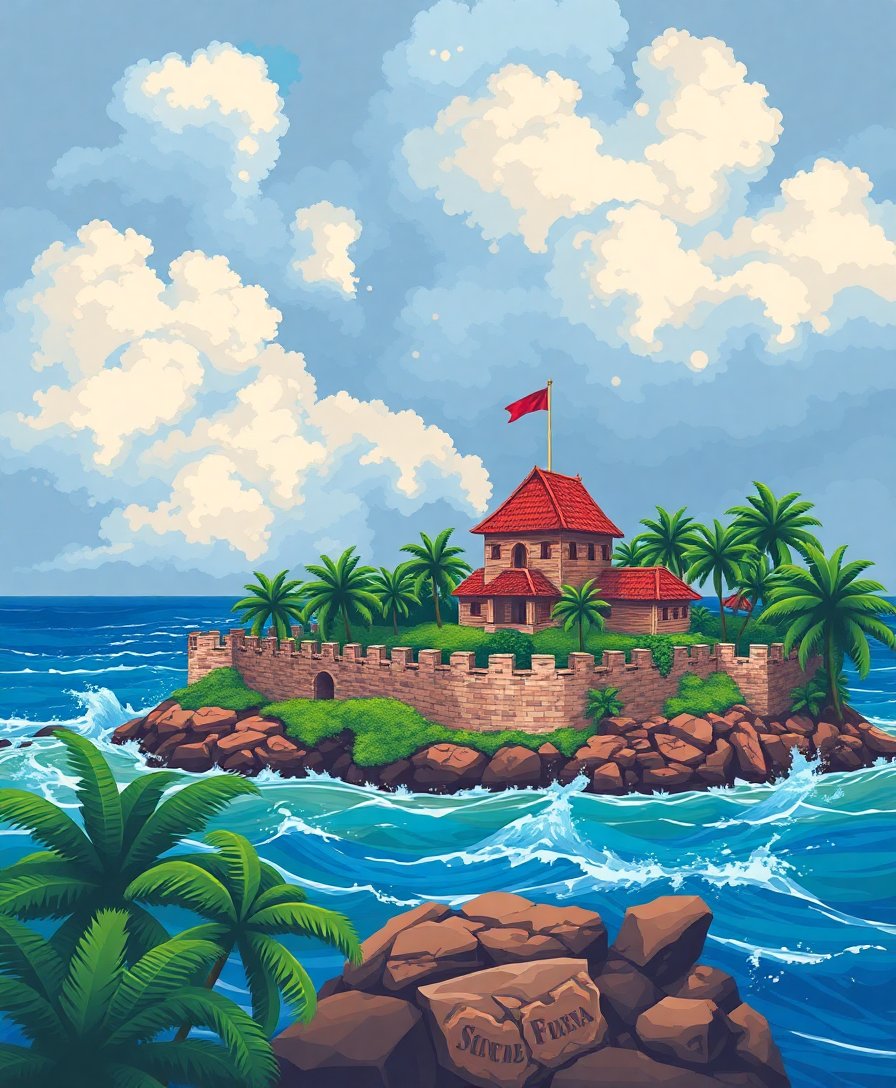 Ultimately, step back and admire your finished tropical fortress scene. Moreover, the completed artwork showcases powerful waves against weathered colonial stones. Additionally, this dramatic piece transforms any room into an artistic gallery space.