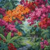 The high-quality linen canvas measures perfectly for wall display while providing ample detail space for the tropical terns and lush botanical elements.