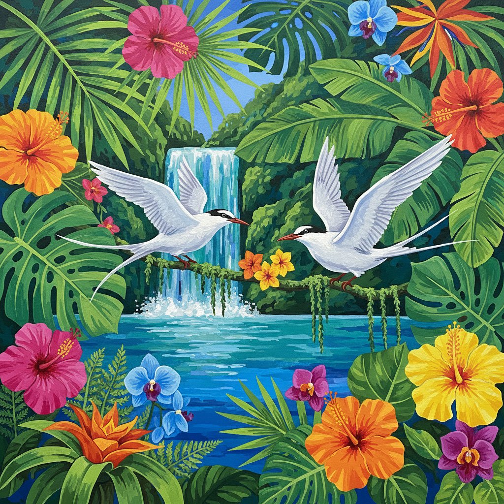 Ultimately, add the graceful terns as your focal masterpiece elements. Furthermore, these elegant coastal birds bring life to your botanical creation. Additionally, the final details transform your canvas into a professional-quality artwork.