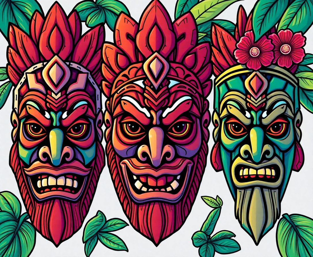 Transform your space with the captivating Three Rustic Tropical Guardians Paint By Numbers, featuring ancient Polynesian tiki masks carved in weathered wood. This stunning artwork brings cultural heritage and tropical mystique into your home. Each guardian tells a story of ancestral wisdom and island traditions.