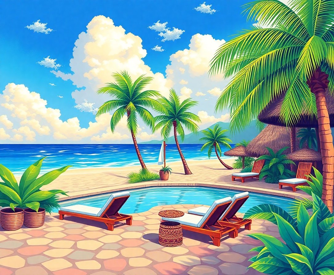 Transform your space into a serene paradise with this stunning Trade Winds Tropical Oasis Paint By Numbers masterpiece. This captivating beach coastal design transports you to sun-drenched shores where gentle trade winds whisper through swaying palms. Moreover, every brushstroke brings you closer to your own tropical retreat.