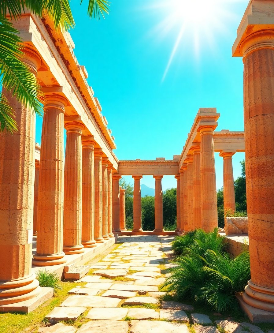 Ultimately, step back and admire your completed masterpiece. The interplay of sunlit columns and tropical flora creates breathtaking visual harmony. Moreover, your finished artwork becomes a conversation piece celebrating classical architecture.