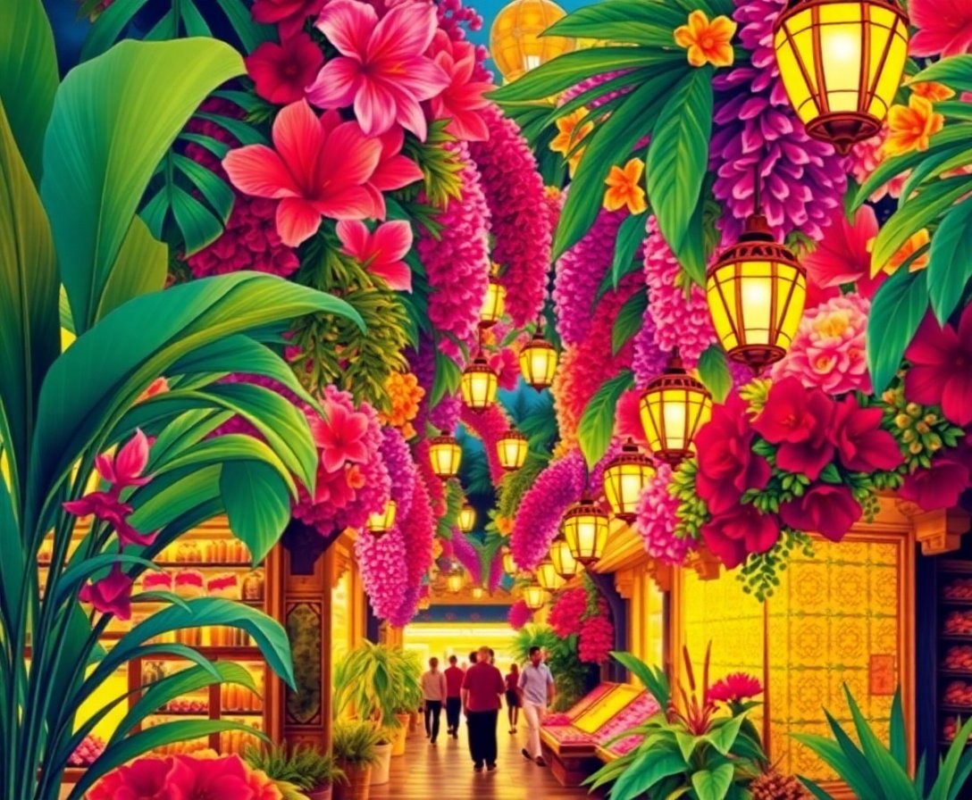 Embark on your artistic adventure today and create a stunning tropical bazaar that celebrates the beauty of distant cultures and vibrant florals.