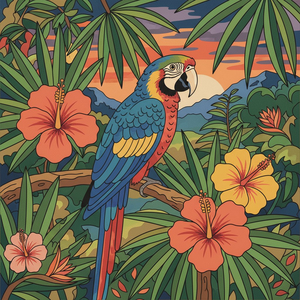 Our premium materials ensure lasting results and enjoyable painting sessions. Moreover, the vintage tropical bird theme appeals to pop culture enthusiasts and art lovers alike. The high-quality canvas and vibrant paints create museum-worthy results.