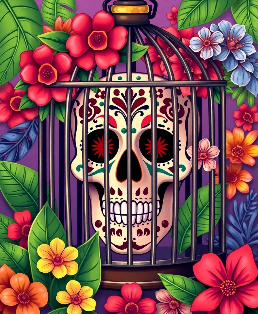 Transform your creative space with this stunning Tropical Birdcage Calavera Paint By Numbers masterpiece. This vibrant design blends festive Dia de los Muertos traditions with tropical hibiscus elements. Moreover, the intricate birdcage motif creates an enchanting focal point for any room.