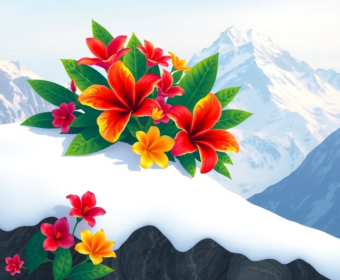 Transform your creative space with the stunning Tropical Blooms Over Snow Paint By Numbers kit. This extraordinary design captures the magical contrast between vibrant tropical flora and pristine alpine snow. Every brushstroke brings this breathtaking landscape to life.