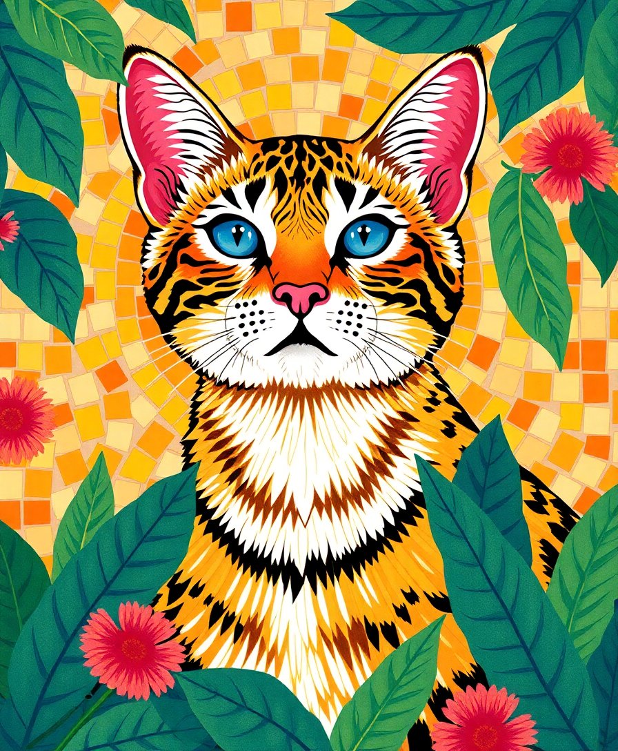 Transform your space with this stunning Tropical Byzantine Feline Mosaic Paint By Numbers kit. This extraordinary design combines ancient Byzantine artistry with vibrant tropical elements. Each numbered section guides you through creating a magnificent feline masterpiece adorned with intricate mosaic patterns.