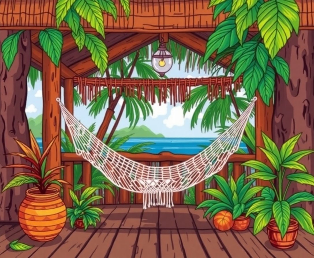 Transform your space with this captivating Tropical Cabin Hammock Nook Paint By Numbers kit. This extraordinary design captures a serene indoor retreat where tropical elements meet rustic charm. Subsequently, you’ll create a stunning artwork that brings peaceful jungle vibes into your home.