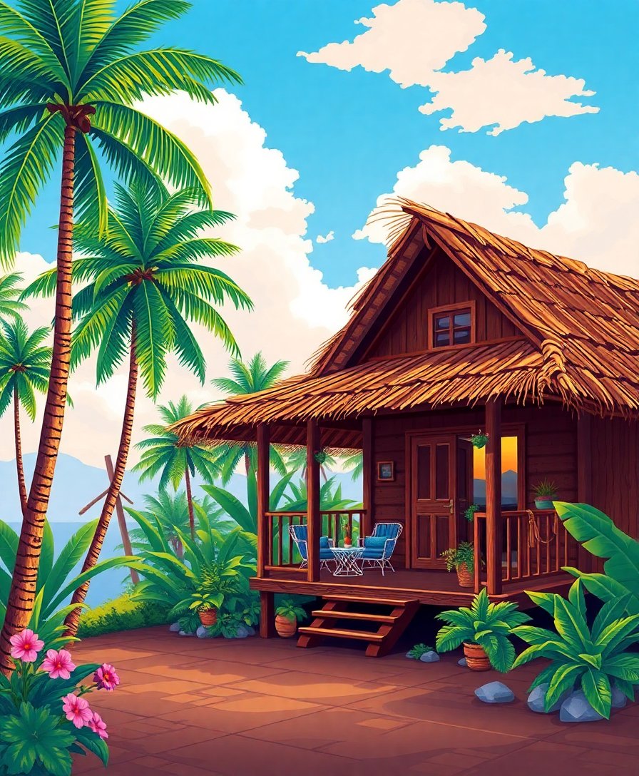Tropical Cabin Morning Light Paint By Numbers