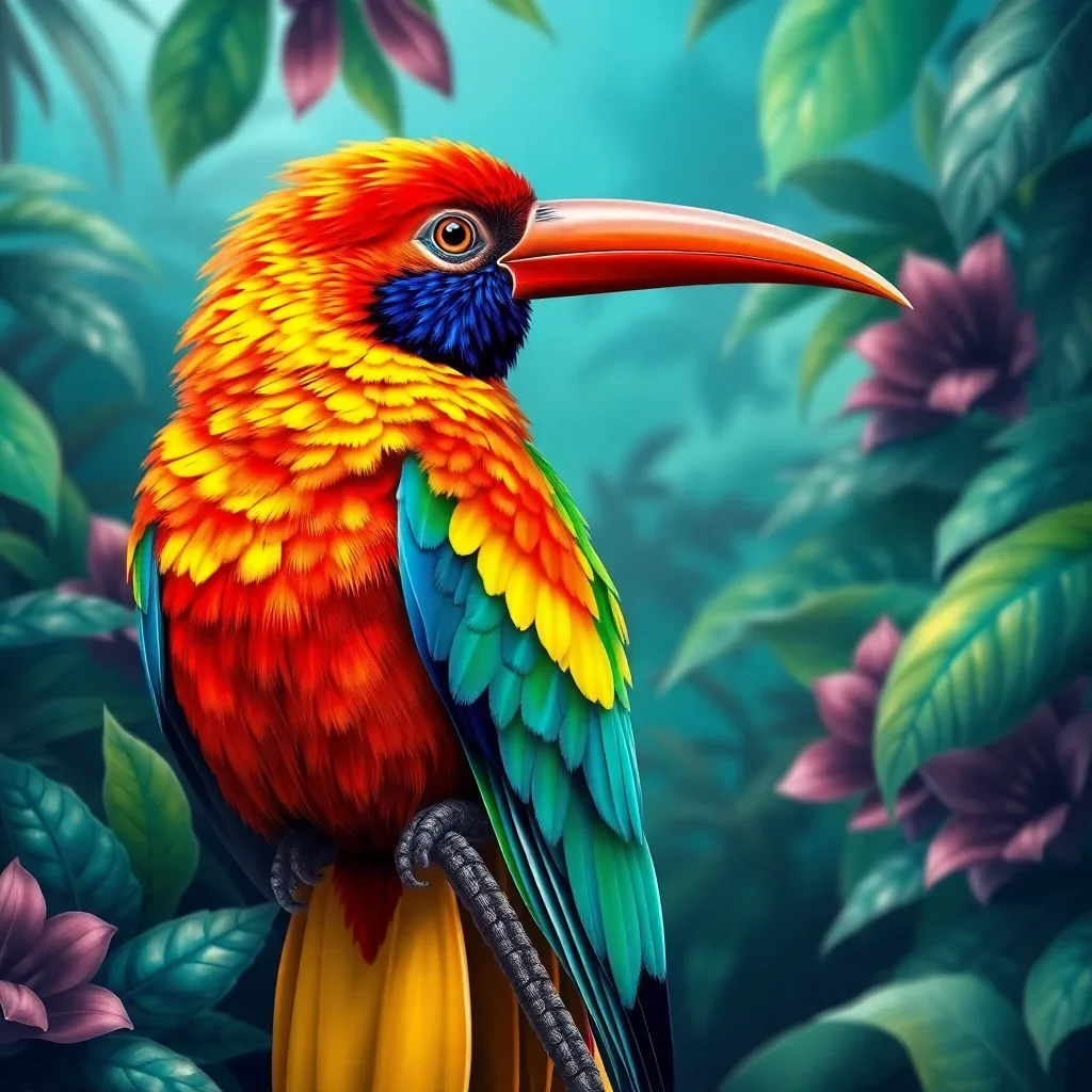 Ultimately, step back and admire your completed masterpiece. The vibrant rainbow bird emerges from the tropical canopy in stunning detail. Your finished artwork transforms any space with exotic beauty and personal accomplishment.