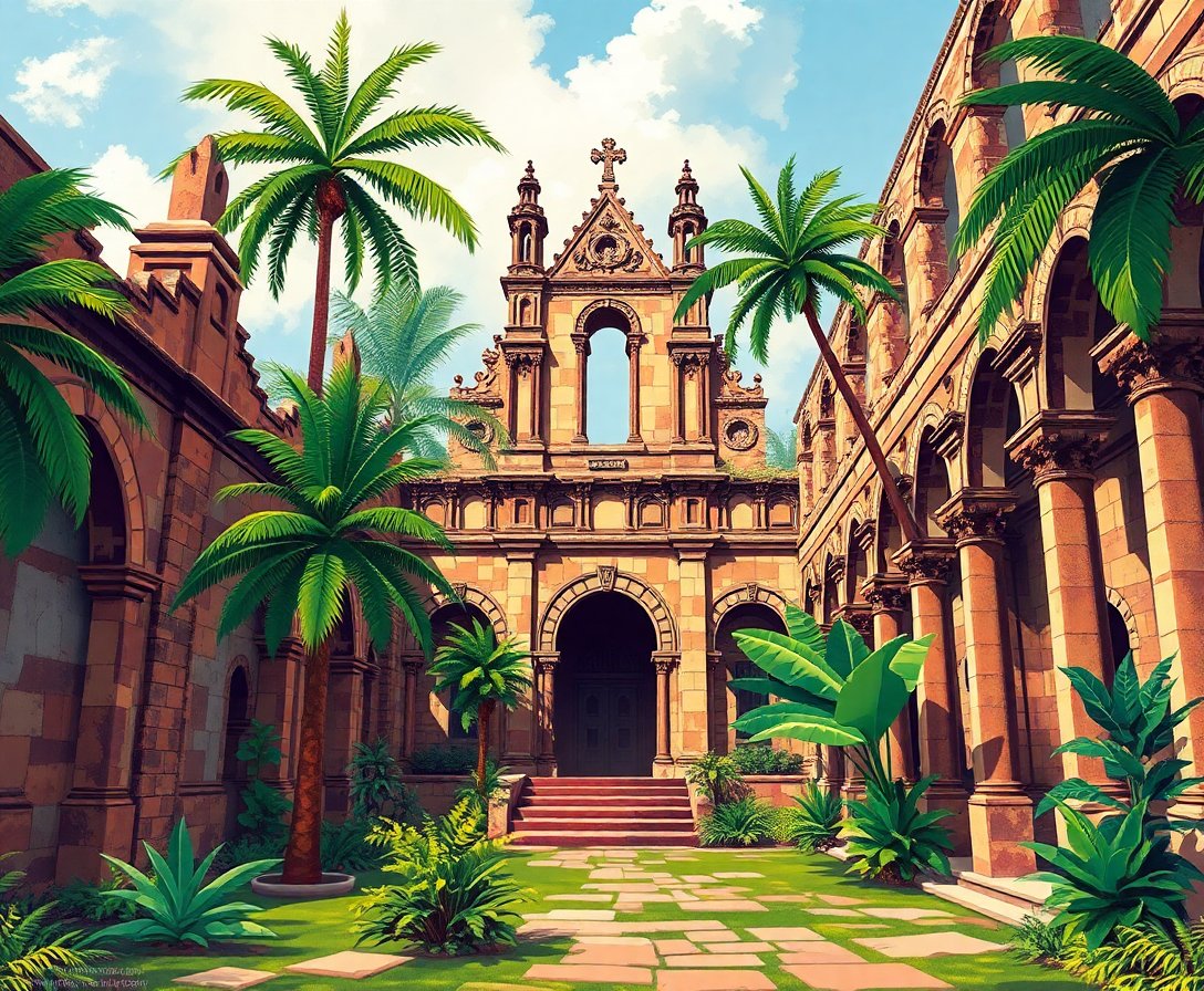 Ultimately, add final touches to highlight where sunlight filters through overgrown vines and weathered arches. Furthermore, step back frequently to appreciate how ancient grandeur emerges through your brushwork. This completion phase reveals the full majesty of your tropical cathedral masterpiece.