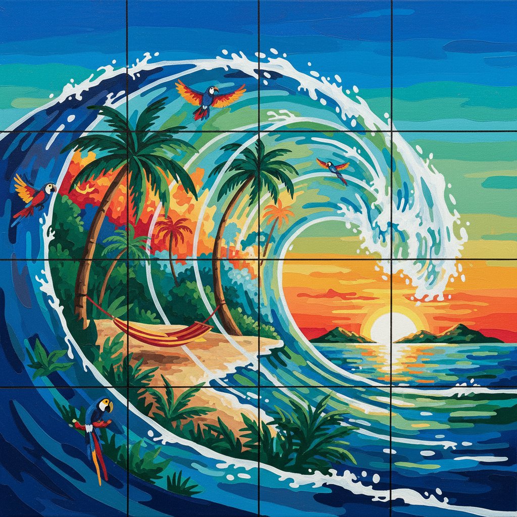 What’s Included in Your Tropical Cinematic Wave Projection Paint By Numbers Kit
