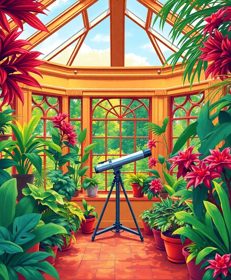 The antique telescope detail adds sophistication to the tropical conservatory setting. Furthermore, this unique hobby combines relaxation with artistic achievement. Consequently, you’ll create a stunning conversation piece for your home.