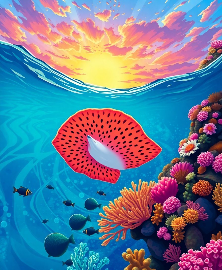This retro-inspired design captures the essence of tropical marine environments beautifully. The vibrant coral colors contrast perfectly with the graceful manta ray forms. Furthermore, the coral reef seascapes theme brings oceanic serenity to any room.