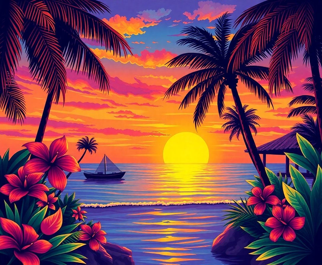Complete Tropical Deco Sunset Glow Paint By Numbers Kit