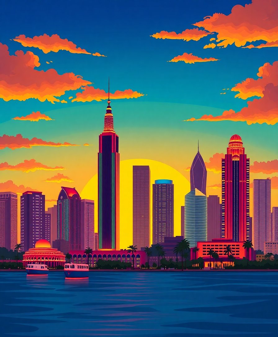 Tropical Deco Sunset Skyline Paint By Numbers