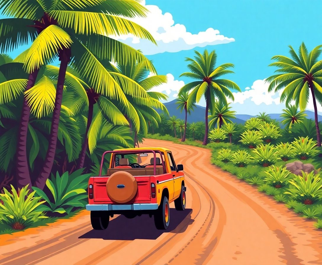 Embark on your creative tropical journey today and discover the joy of artistic expression through this enchanting dirt road adventure.