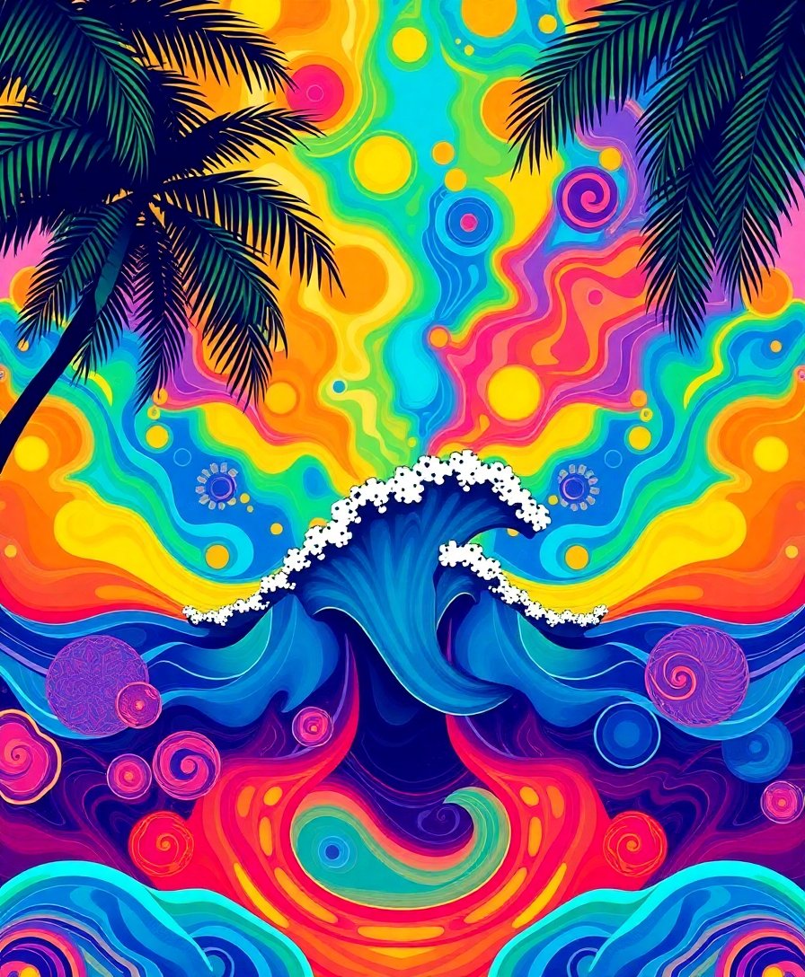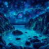 Ultimately, add the final neon blue highlights that bring the moonlit tide to life. Your completed masterpiece will showcase the magical glow of tropical waters under the equinox moon.