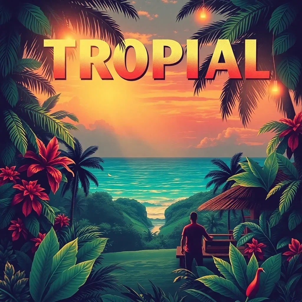 Create your own slice of retro paradise with this enchanting tropical evening design. Every detail celebrates the golden age of concert posters. Start your artistic adventure today and bring this mesmerizing twilight scene to life.