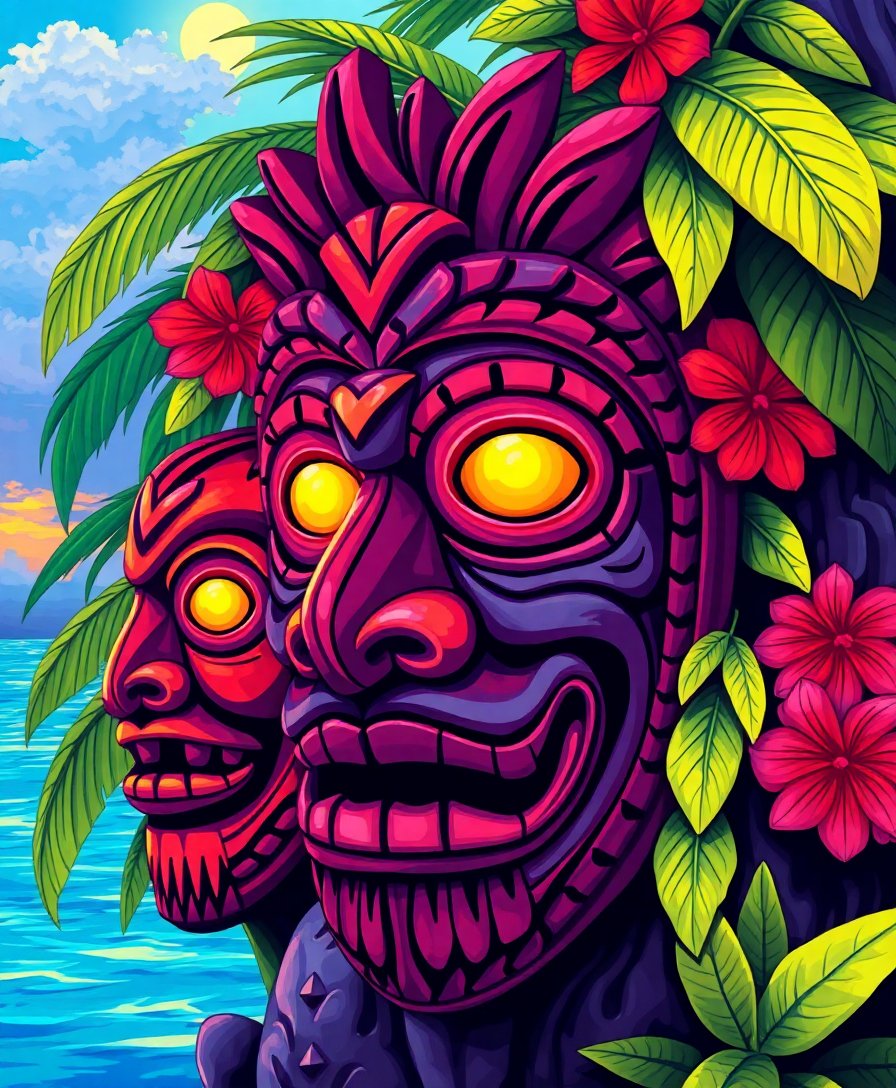 Transform your creative space with this captivating Tropical Evening Washed Relic Paint By Numbers masterpiece. This stunning cultural artwork brings the mystique of ancient Polynesian traditions directly to your canvas. Moreover, the rich sunset colors and weathered textures create an immersive artistic experience.
