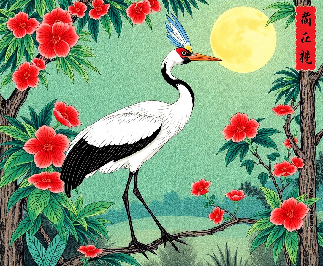 This kit combines traditional feudal Japanese crane imagery with tropical elements, creating a unique fusion of cultural artistry. It’s perfect for those interested in historical art styles with a modern twist.