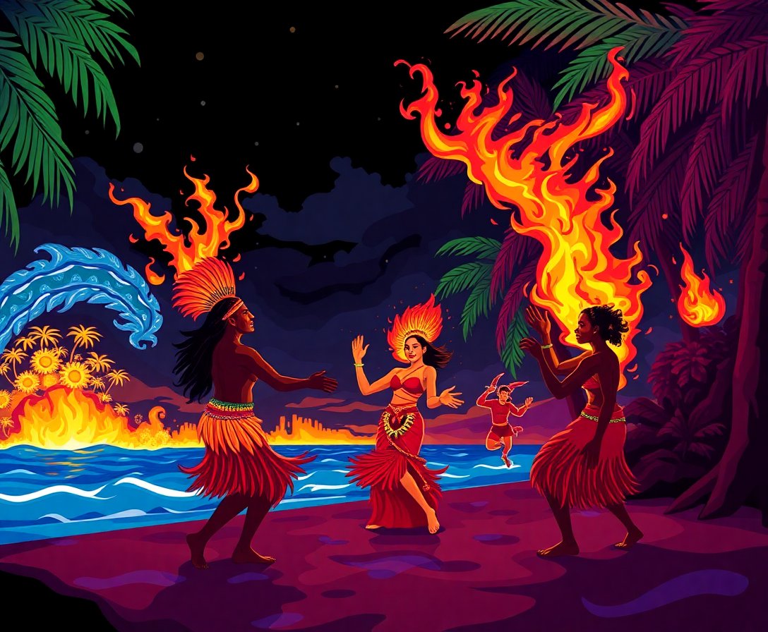 Transform any room into a tropical paradise with this captivating fire dance artwork. Indeed, this Polynesian culture inspired piece brings warmth and energy to your living space.