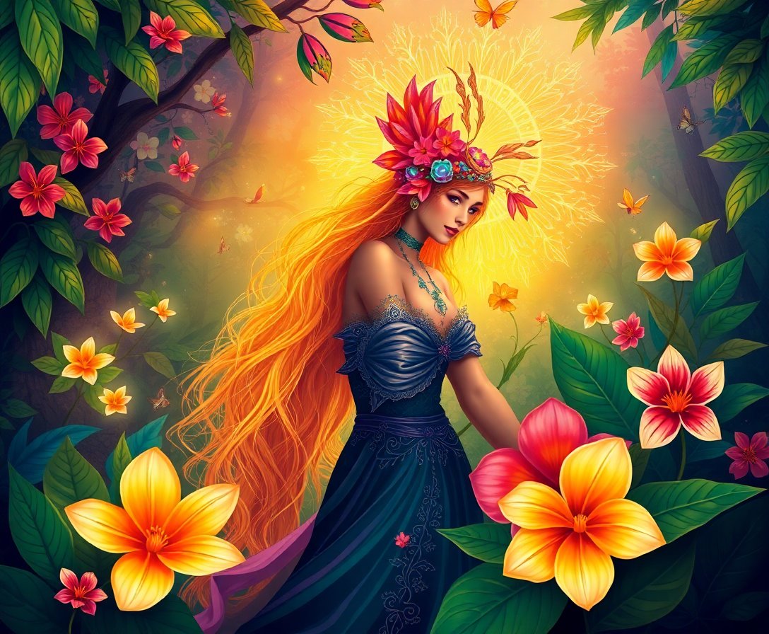 Ultimately, add final details to the bioluminescent flora surrounding your mystical maiden. Step back and admire your completed masterpiece. Furthermore, the glowing tropical elements create an enchanting focal point.
