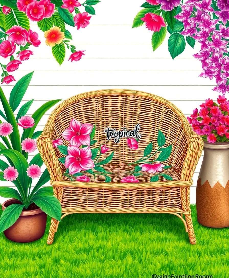 Embrace this delightful Tropical Floral Wicker Seat Paint By Numbers adventure today. Transform blank canvas into a cozy masterpiece that celebrates heritage craftsmanship and tropical elegance. Your creative journey awaits discovery.