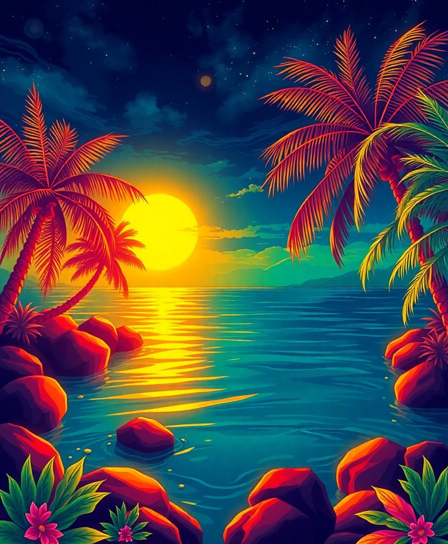 Ultimately, add final nocturnal details that bring your tropical seascape to life. Furthermore, step back and admire your glowing masterpiece. The finished piece radiates peaceful energy.