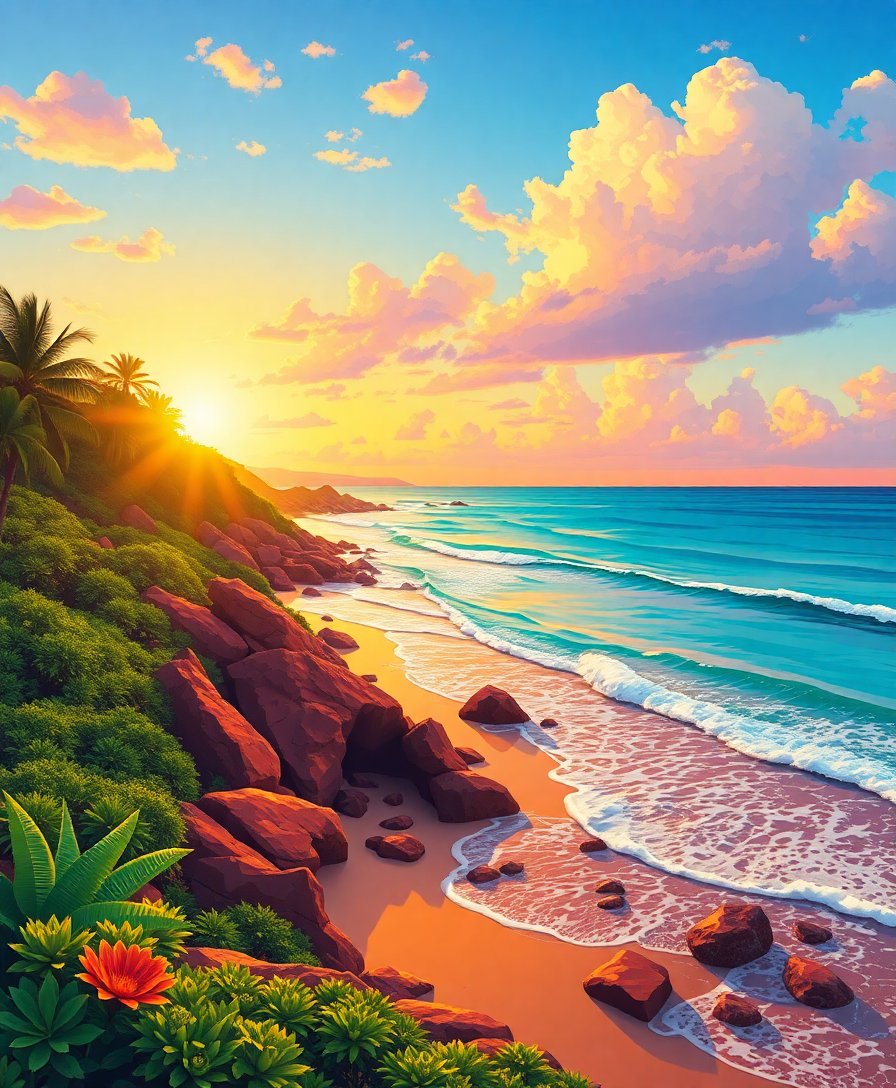Ultimately, step back and admire your finished tropical masterpiece proudly. Moreover, the golden hour lighting creates stunning visual depth. Finally, your completed artwork radiates warmth and seasonal beauty throughout any room.