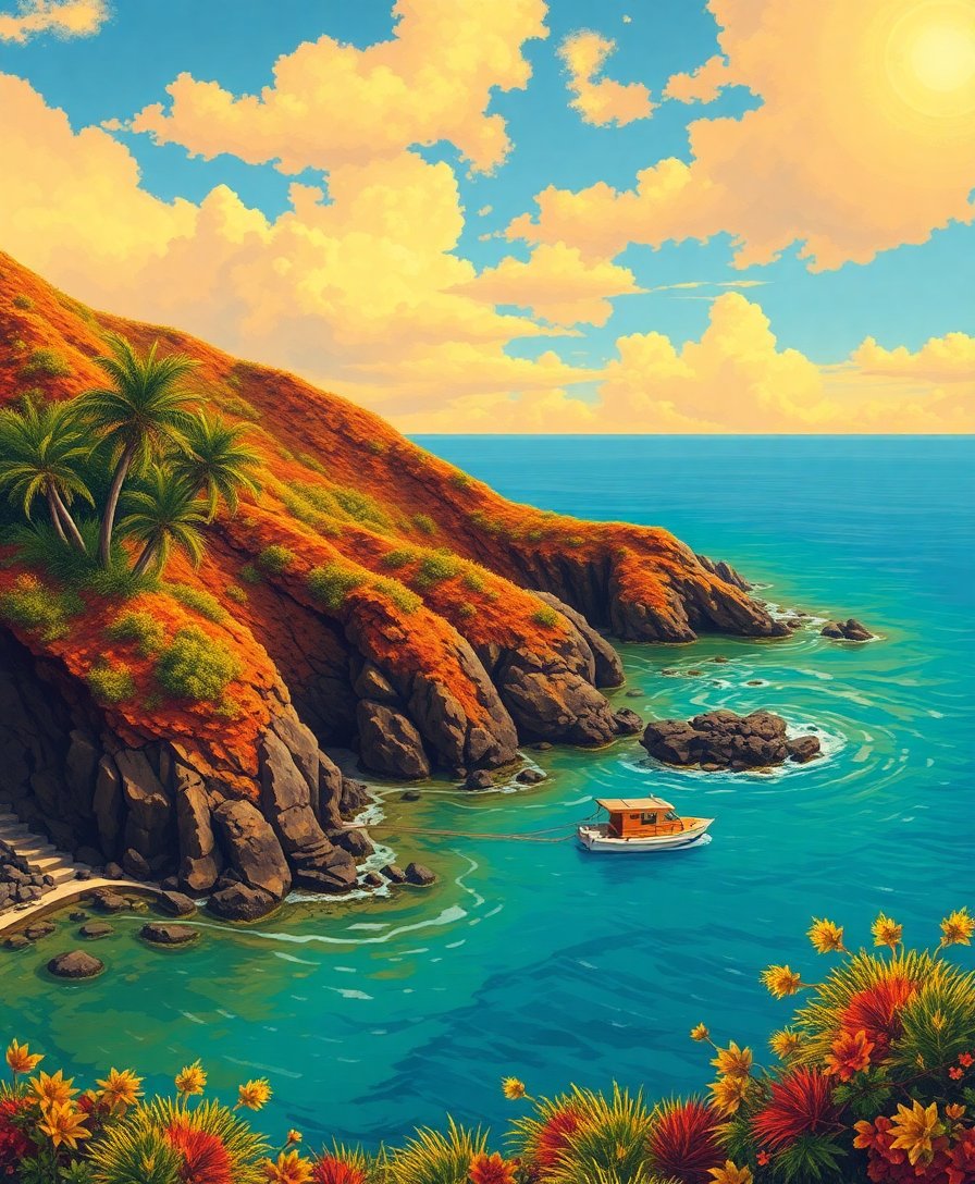 Tropical Golden Volcanic Coast Paint By Numbers