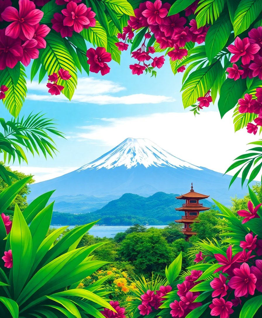Tropical Greenery Framing Fuji Paint By Numbers