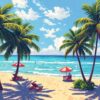 Is this tropical harbor scene suitable for beginners?