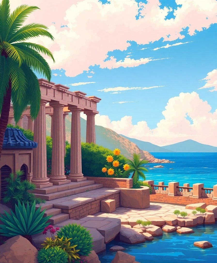 Tropical Hellenic Coastal Sanctuary Paint By Numbers