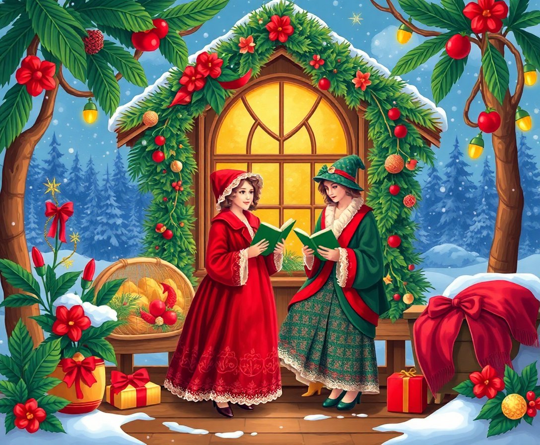 This realistic tropical caroling design combines traditional Victorian winter elements with exotic flair. Furthermore, the singing figures and decorative snowflakes create visual interest. The holiday collection piece suits both beginners and experienced painters seeking unique seasonal artwork.