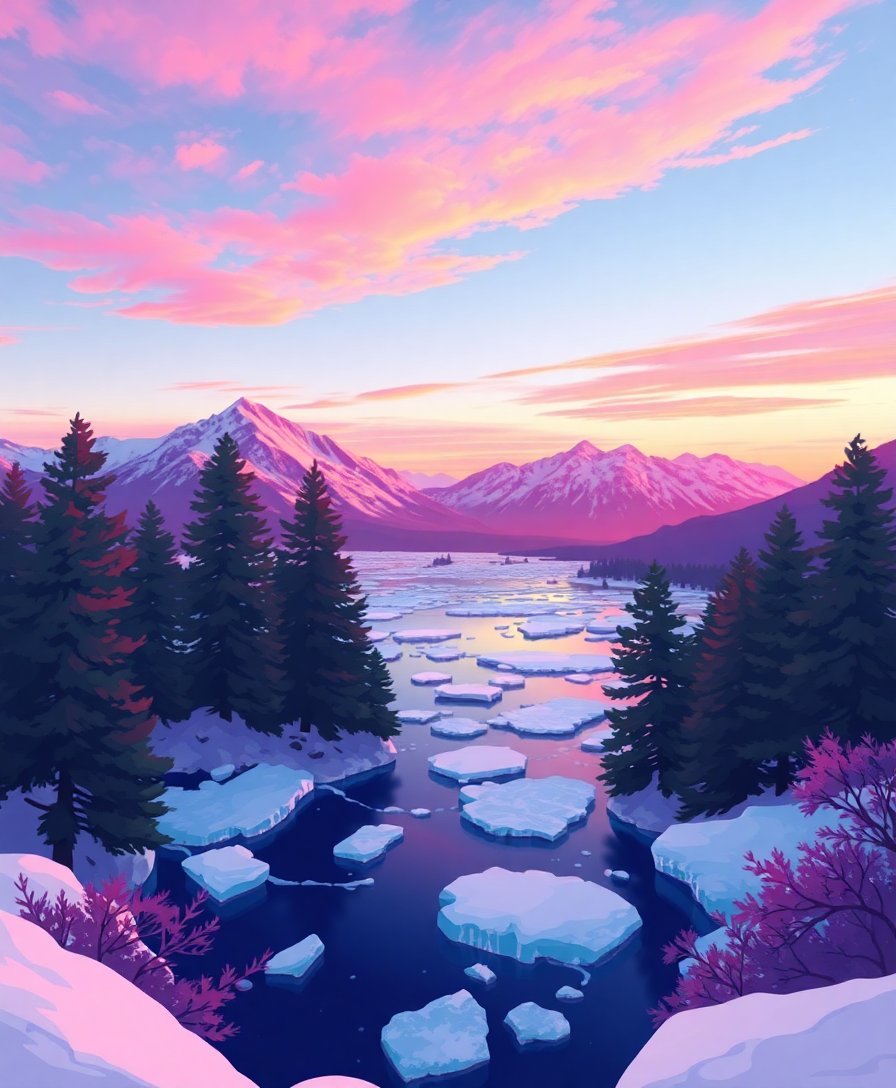 Experience the stunning contrast of warm tropical hues meeting icy landscapes with this captivating Tropical Hues Over Ice Paint By Numbers kit. This unique artistic journey combines vibrant sunset colors with crystalline winter elements.