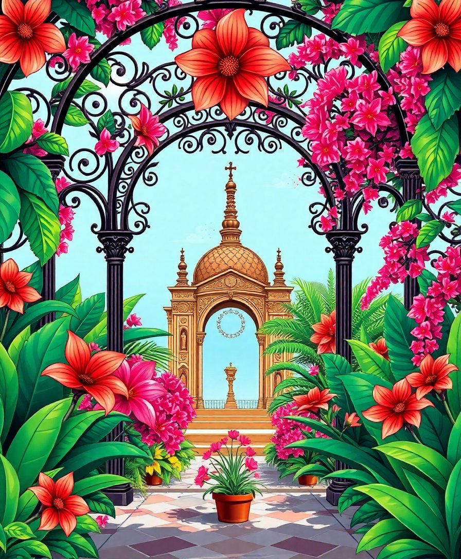 Tropical Ironwork Sanctuary Blooms Paint By Numbers