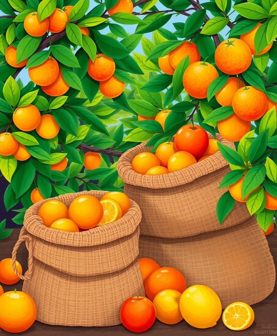 Transform your space with the vibrant beauty of a sun-drenched orchard through this stunning Tropical Island Citrus Sacks Paint By Numbers. This captivating design showcases overflowing sacks of fresh citrus fruits beneath swaying palms. Each brushstroke brings tropical paradise to life on your canvas.