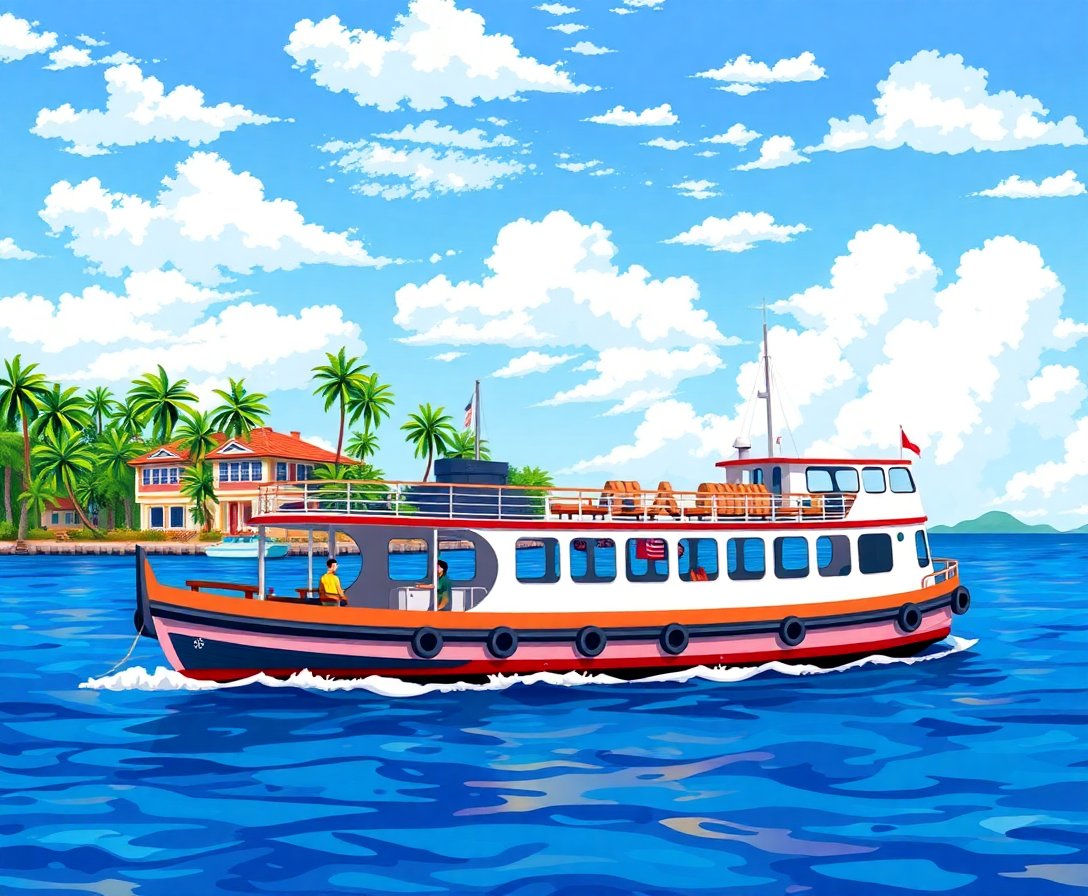 Transform your creative space with this captivating Tropical Island Ferry Paint By Numbers masterpiece. This stunning coastal scene captures a vintage ferry gliding through turquoise waters toward a wooden pier, bringing the serene beauty of historic port towns directly to your home.