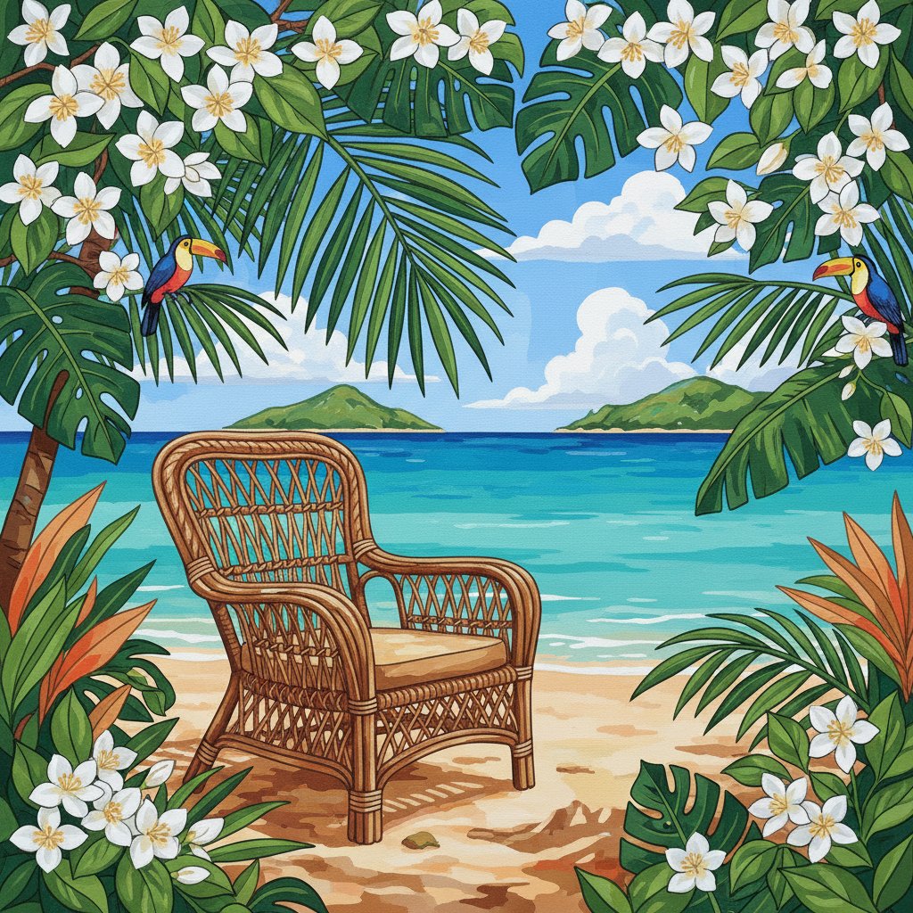 Transform your space with this enchanting Tropical Jasmine Wicker Seat Paint By Numbers masterpiece. This stunning botanical artwork captures delicate jasmine blooms cascading over rustic wicker furniture. Meanwhile, lush tropical greens create depth and natural beauty.