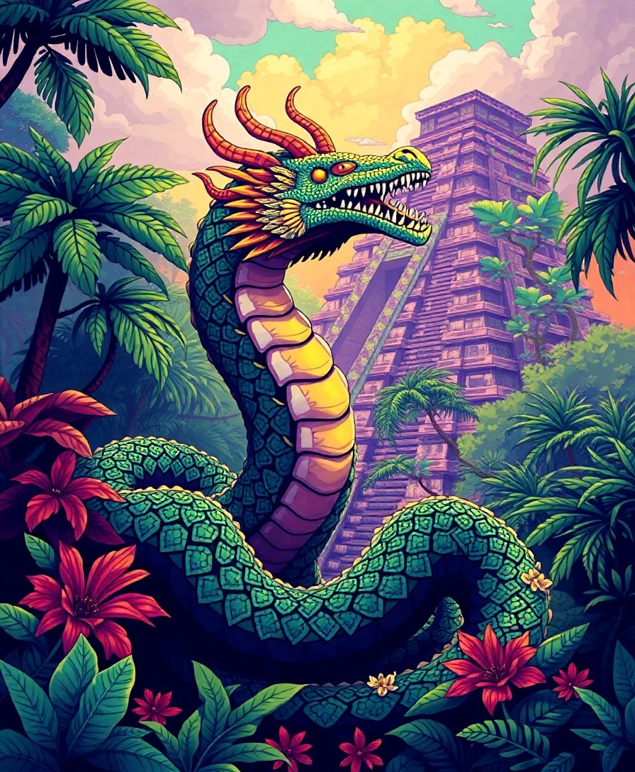 Immerse yourself in ancient mysteries with this captivating Tropical Jungle Serpent Deity Paint By Numbers kit. This extraordinary artwork brings together lush tropical vegetation and mystical Mesoamerican symbolism. Transform your space into an archaeological adventure that celebrates both natural beauty and cultural heritage.