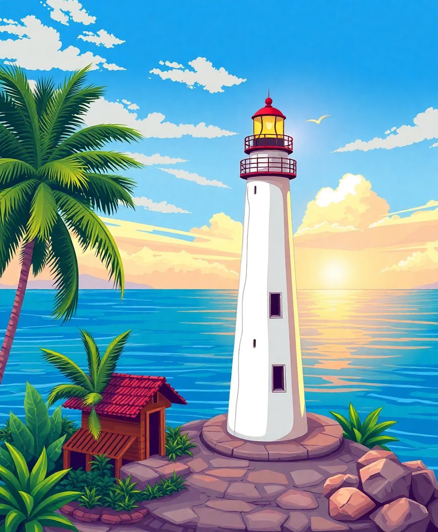 Transform your space with this stunning Tropical Lighthouse Wind Arrow Paint By Numbers masterpiece. This captivating design blends coastal charm with architectural beauty. Moreover, the gentle breeze effect adds movement to your finished artwork.