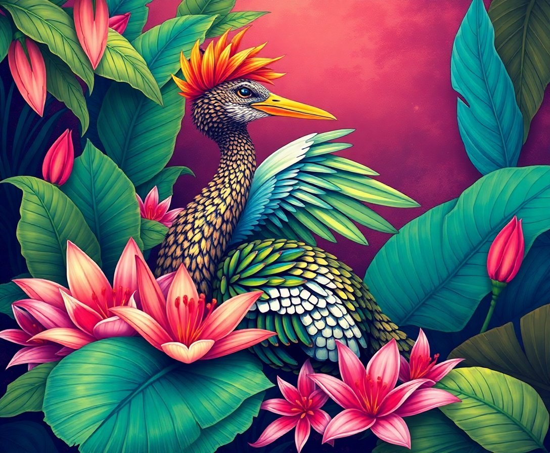 Transform your space with the enchanting Tropical Lily Resting Drake Paint By Numbers. This captivating kit depicts a majestic drake peacefully resting on giant lily pads. Meanwhile, lush jungle foliage creates a serene tropical paradise. The artwork combines mythical beauty with natural tranquility.