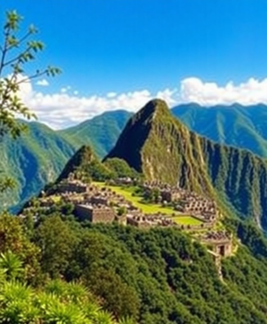 Ultimately, step back and admire your completed masterpiece showcasing Peru’s magnificent landscape. The tropical foliage and ancient ruins create a captivating focal point for any room.